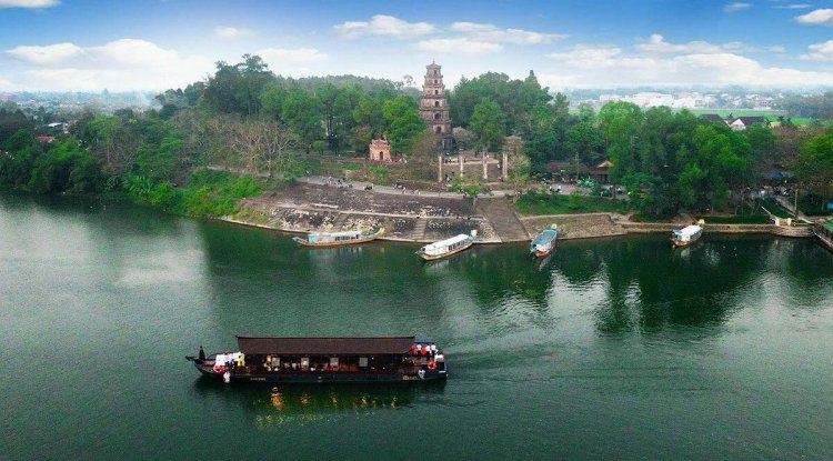 - Đi giữa thiên nhiên, sông Hương cũng chuyển mình ngày đêm bên những lăng tẩm, thành quách của vua chúa thời Nguyễn. Con sông hiền hòa ở ngoại vi Huế đến đây như đang nép mình bên “giấc ngủ nghìn năm của những vua chúa được phong kín trong lòng rừng thông u tịch”