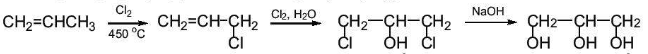 Trong công nghiệp, glycerol được tổng hợp từ propylene theo sơ đồ sau: