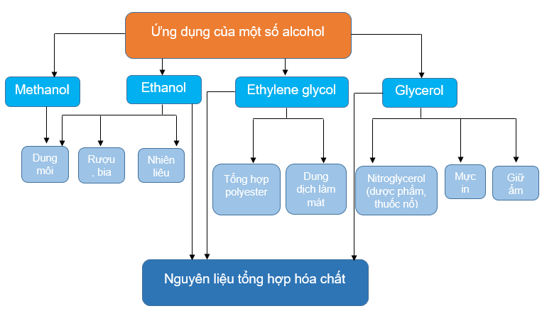 Ứng dụng của một số alcohol được thể hiện trong sơ đồ sau: