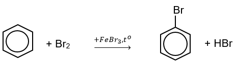 Khi có mặt xúc tác FeBr3 hoặc AlBr3, benzene tác dụng với bromine khan tạo thành bromobenzene.