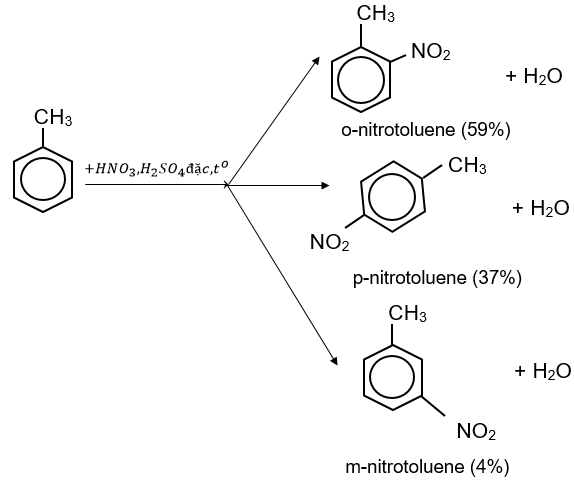 Tolunene được nitro hóa tạo thành hỗn hợp hai sản phẩm chính ortho và para-nitrotolune.