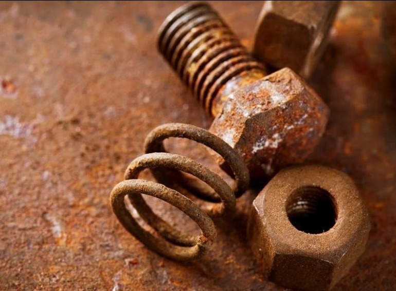 | a) Thức ăn bị ôi thiu | b) Ốc vít bị gỉ |