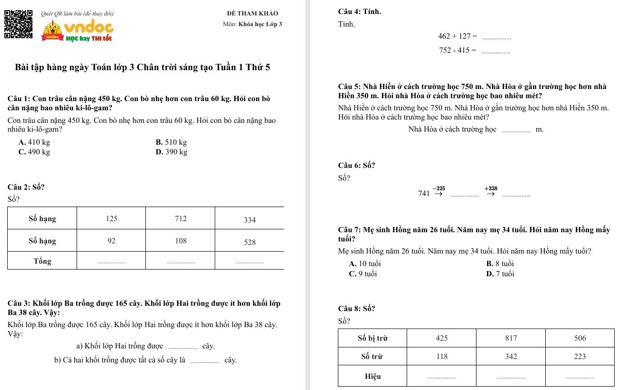 Bộ bài tập hàng ngày Toán lớp 3 Chân trời sáng tạo (Học kì 1)