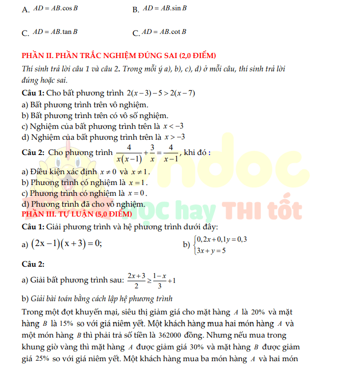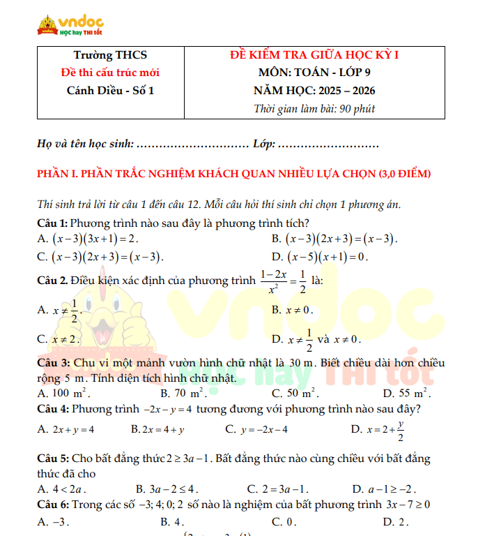 Bộ đề thi giữa HK1 Toán 9 Cánh Diều Cấu trúc mới – Có đáp án
