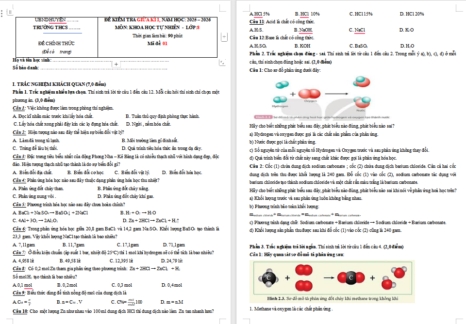 Bộ đề thi giữa học kì 1 môn Khoa học tự nhiên lớp 8 năm 2025 - 2026 (Sách mới)