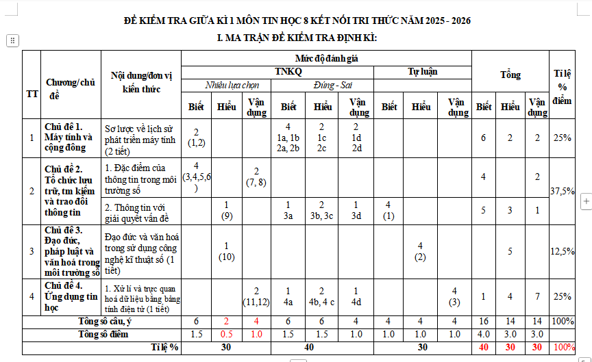 Bộ đề thi giữa học kì 1 môn Tin học 8 năm 2025 - 2026 sách Kết nối tri thức với cuộc sống