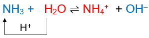 Trong phản ứng thuận, NH3 nhận H+ của H2O ⇒ NH3 là base, H2O là acid
