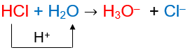 HCl (aq) → H+ (aq) + Cl- (aq)