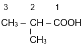 | 2-methylpropanoic acid | 3-methylbut-enoic acid | 4-methylpentanoic acid |
