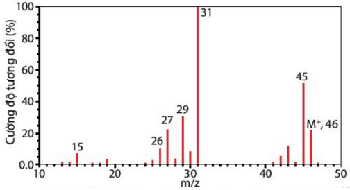 Ví dụ: Phổ khối lượng của ethanol có peak (pic) ion phân tử [C2H6O+] có giá trị m/z = 46, đúng bằng phân tử khối của chất.