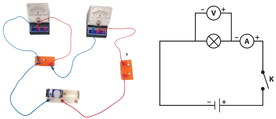 Hình 2: Bố trí thí nghiệm đo cường độ dòng điện qua một bóng đèn