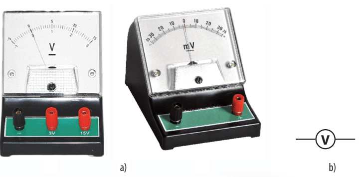 Hình 3: a) Một số loại vôn kế; b) Kí hiệu của vôn kế