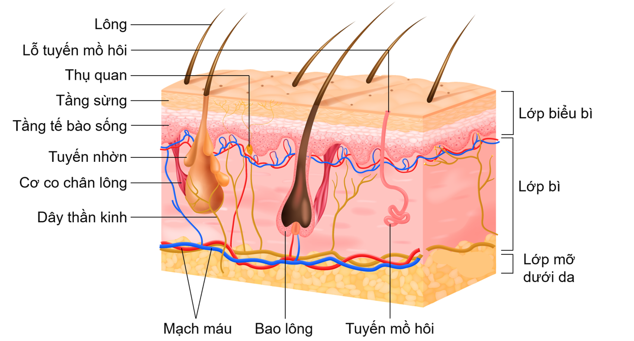 - Da là lớp bảo vệ đầu tiên, ngăn nước và các tác nhân có hại từ bên ngoài xâm nhập vào cơ thể, ngăn mất nước từ bên trong cơ thể.