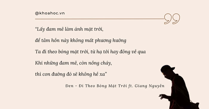 Thiên nhiên trong những nhạc phẩm của Đen cũng luôn rất đẹp đẽ và gần gũi, hòa quyện với con người: “Ta sẽ cùng mở nhạc, giữa rừng xanh và nhảy cùng – là đâu đó giữa chập chùng núi non kia – nằm trên đồi hút điếu thuốc và ở trong túi là lon bia” (Đi theo bóng mặt trời).