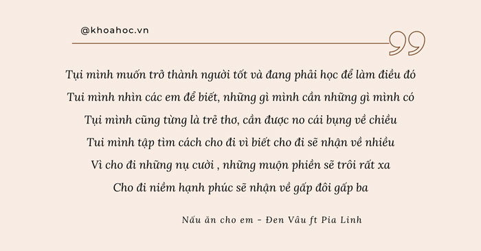 Những câu hát được gieo vần và biến hóa khôn lường khiến người nghe đồng cảm. Họ đồng cảm về cuộc sống nơi phố phường muốn “xô ta cả khi ta trốn trong phòng ngủ - Âu lo theo về dù ta đã trốn trong phòng ngủ”, chốn công sở “đi sớm về hôm mà đồng lương vẫn không khi đủ”. Đồng cảm thực tế phũ phàng trong cuộc sống “người ta không quý con ong, mà người ta chỉ quý mật”. Và những người đồng âm ấy, họ cũng đồng cảm về sự cô đơn, lẻ loi giữa biển người mênh mông, về những “tối đi về đơn độc, em thấy lòng mình lặng thinh”.