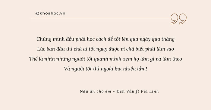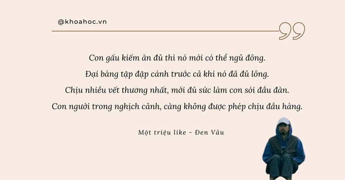 Trong những lời ca, có rất nhiều câu rap tựa như châm ngôn tràn đầy những trải nghiệm của Đen mà không hề có sự phán xét, dạy dỗ, ngược lại như người bạn chân thành truyền động lực, làm điểm tựa tinh thần cho con người ta vực dậy: “Đại bàng tập đập cánh, trước cả khi nó đã đủ lông/ Chịu nhiều vết thương nhất, mới đủ sức làm con sói đầu đàn/Con người trong nghịch cảnh, càng không được phép chịu đầu hàng.” (Một triệu like)