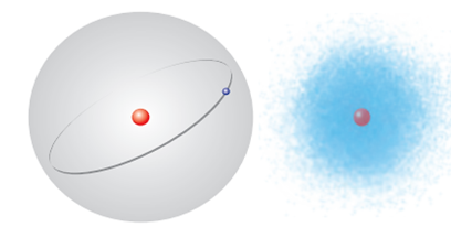 Theo mô hình (2), xác suất tìm thấy electron lớn nhất là ở trong các orbital nguyên tử (xác suất tìm thấy khoảng 90%).