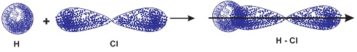 Liên kết hóa học trong phân tử hợp chất HCl được hình thành nhờ sự xen phủ giữa obitan 1s của nguyên tử hydrogen và obitan 3p có 1 electron độc thân của nguyên tử chlorine