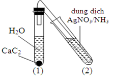 Ở ống nghiệm (1) có kết tủa màu vàng nhạt là AgC≡CAg.