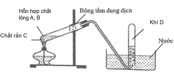 Thí nghiệm theo sơ đồ sau đây được dùng để điều chế một lượng nhỏ khí D trong phòng thí nghiệm.