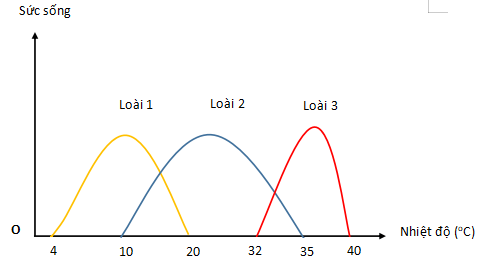 (1) Loài 3 được xem là loài ưu nhiệt, đồng thời là loài hẹp nhiệt nhất trong 3 loài.