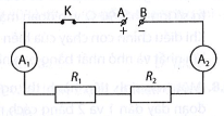 Cho sơ đồ mạch điện như hình bên. Nếu số chỉ của ampe kế A1 là 0,50 A thì số chỉ của ampe kế A2 là