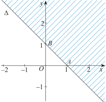 Phần hình vẽ được tô đậm là miền nghiệm của bất phương trình nào? (tính cả bờ là đường thẳng chia đôi mặt phẳng)