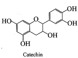 Catechin là một chất kháng oxi hoá mạnh, ức chế hoạt động của các gốc tự do nên có khả năng phòng chống bệnh ung thư, nhồi máu cơ tim. Trong lá chè tươi, catechin chiếm khoảng 25 − 35% tổng trọng lượng khô. Ngoài ra, catechin còn có trong táo, lê, nho,… Công thức cấu tạo của catechin cho như hình bên: