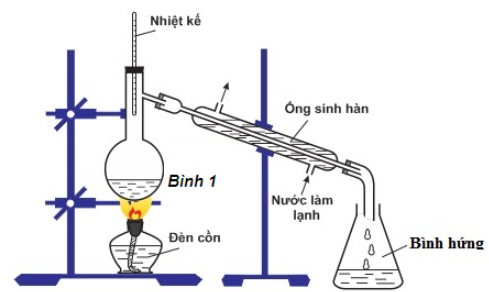 Cho bộ dụng cụ chưng cất (được mô tả như hình vẽ sau). Phương pháp chưng cất thường dùng để: