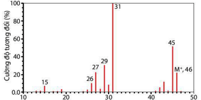 Quan sát phổ khối lượng ta thấy, mảnh ion phân tử ứng với tín hiệu có giá trị m/z lớn nhất là 46.