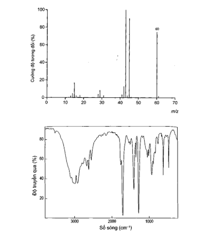 – Kết quả đo phổ khối lượng (MS) và phổ hồng ngoại (IR) của hợp chất (E) được cho như hình bên dưới: