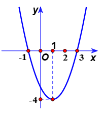 Quan sát đồ thị ta loại y = x2 − 3x − 3 và y = − x2 + 5x − 3. Phần đồ thị bên phải trục tung là phần đồ thị (P) của hàm số y = − x2 + 5x − 3 với x > 0, tọa độ đỉnh của (P) là , trục đối xứng là x = 2, 5. Phần đồ thị bên trái trục tung là do lấy đối xứng phần đồ thị bên phải của (P)qua trục tung Oy. Ta được cả hai phần là đồ thị của hàm số y = − x2 + 5|x| − 3.