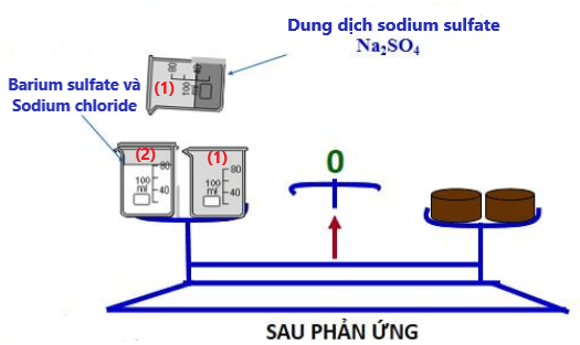 Trên mặt cân đặt 2 cốc: cốc (1) đựng dung dịch barium chloride, cốc (2) đựng dung dịch sodium sulfate. Ghi tổng khối lượng 2 cốc.