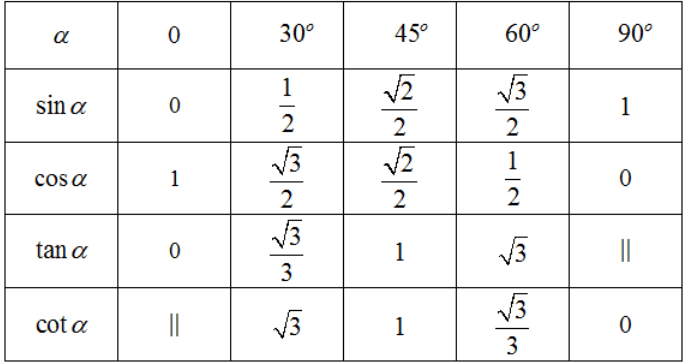 Chú ý: Trong bảng trên, kí hiệu || để chỉ các giá trị lượng giác không xác định.