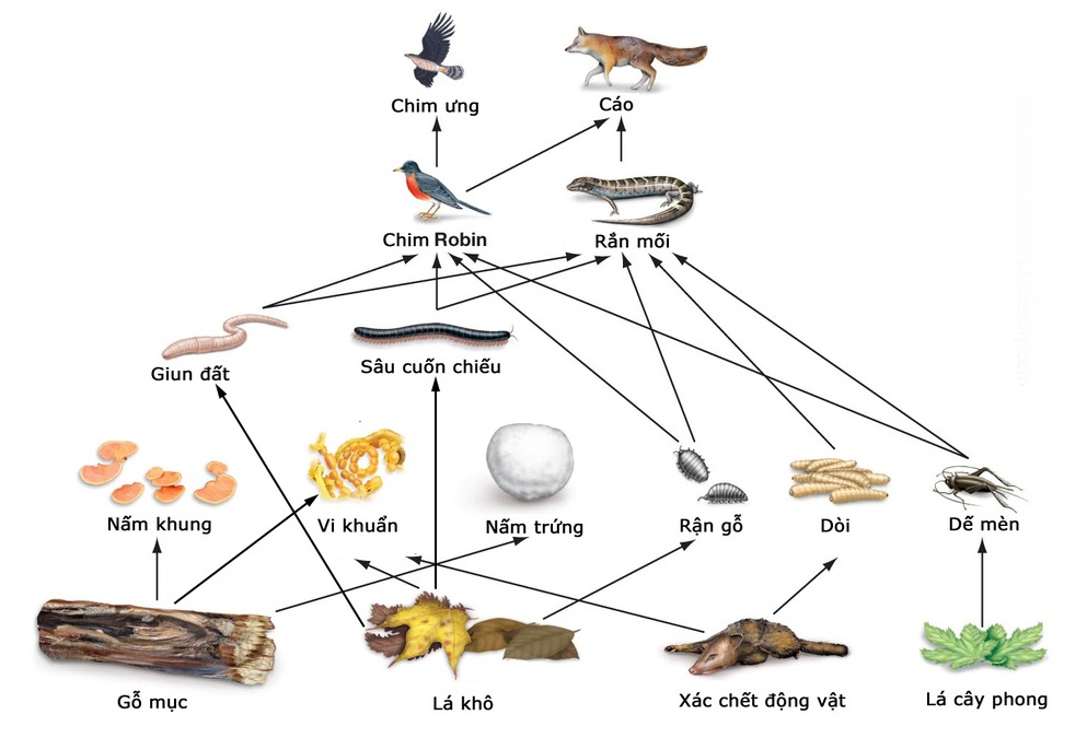 Một lưới thức ăn hoàn chỉnh gồm ba thành phần chủ yếu: