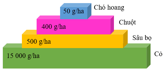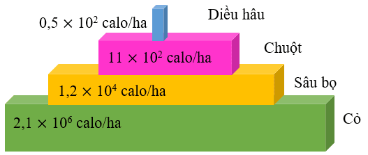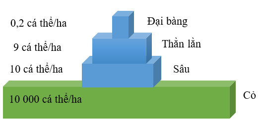 - Tháp số lượng: thể hiện số lượng cá thể sinh vật trên một đơn vị diện tích hay thể tích ở mỗi bậc dinh dưỡng.