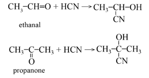 Hydrogen cyanide (HCN) phản ứng được với các aldehyde hoặc ketone tạo thành sản phẩm là các cyanohydrin.