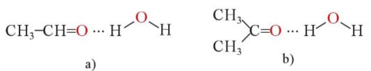 Liên kết hydrogen giữa phân tử acetaldehyde (a) và acetone (b) với nước
