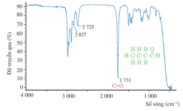 Quan sát trên phổ IR: tín hiệu 1731 cm-1 là tín hiệu đặc trưng của liên kết C=O; các tín hiệu ở 2827 cm-1 và 2725 cm-1 là các tín hiệu đặc trưng của liên kết C-H trong nhóm -CHO.
