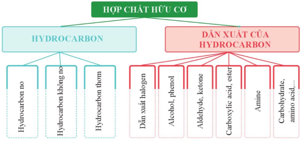 Các hợp chất hữu cơ thường được chia thành 2 nhóm lớn: hydrocarbon và dẫn xuất của hydrocarbon.
