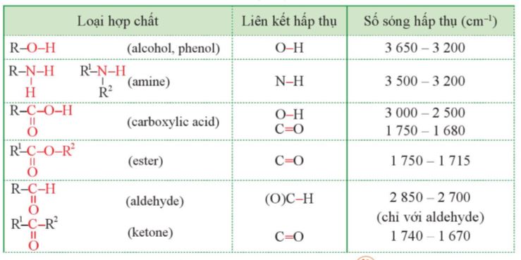- Có thể xác định được nhóm chức trong phân tử hợp chất hữu cơ dựa vào tín hiệu hấp thụ đặc trưng trên phổ hồng ngoại của nó.