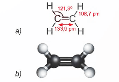 Công thức cấu tạo (a) và mô hình phân tử (b) của ethylene
