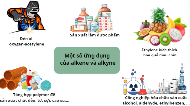 Alkene và alkyne đều dễ cháy khi có mặt oxygen, phản ứng toả nhiều nhiệt: