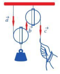 Ví dụ: Hình vẽ bên mô tả hoạt động của ròng rọc khi dùng lực kéo một đầu. Chuyển động của các sợi dây tương ứng với các vectơ