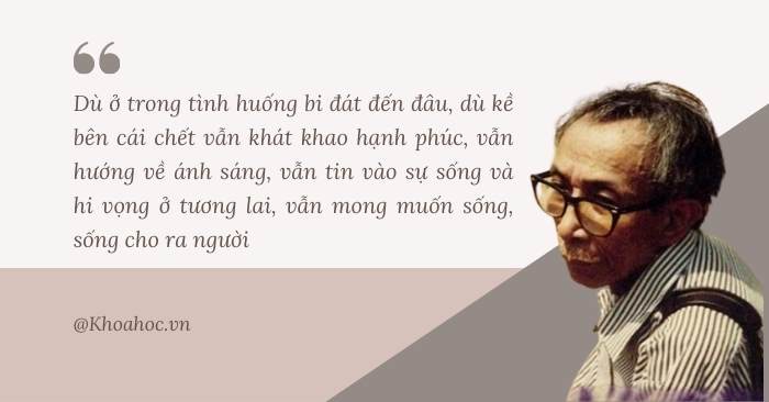 - “Khi đói người ta không nghĩ đến con đường chết mà chỉ nghĩ đến con đường sống. Dù ở trong tình huống bi đát đến đâu, dù kề bên cái chết vẫn khát khao hạnh phúc, vẫn hướng về ánh sáng, vẫn tin vào sự sống và hi vọng ở tương lai, vẫn mong muốn sống, sống cho ra người.”