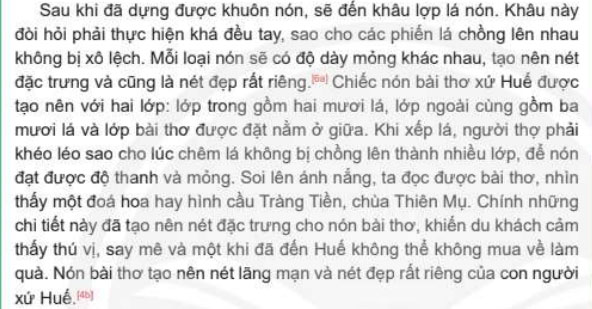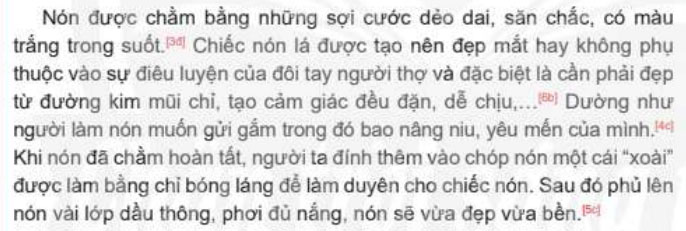 Theo bài viết tham khảo, nội dung thuyết minh về quy trình làm một chiếc nón lá được sắp xếp theo trình tự nào?