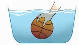 Ta cũng có thể cảm nhận được lực đẩy lên quả bóng khi dùng tay nhấn chìm quả bóng xuống nước.