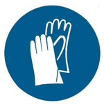 Biển báo “Phải đeo găng tay thường xuyên” thuộc biển báo hiệu lệnh: hình tròn, nền xanh, hình vẽ có màu trắng.