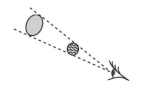 Bạn Minh đã làm thí nghiệm như sau để đo đường kính của Mặt Trăng: Bạn chuẩn bị một tấm bìa đường kính 2 cm, đặt tấm bìa trước mặt sao cho tấm bìa hình tròn vừa phủ kín Mặt Trăng (hình dưới). Đo khoảng cách từ vị trí đặt mắt đến tấm bìa, bạn Minh thu được khoảng cách là 220 cm. Em hãy giúp bạn Minh xác định đường kính của Mặt Trăng. Biết rằng khoảng cách trung bình từ Mặt Trăng đến Trái Đất là 384 400 km. Coi tỉ số giữa đường kính tấm bìa và đường kính Mặt Trăng bằng tỉ số giữa khoảng cách đặt mắt đến tấm bìa và khoảng cách từ Mặt Trăng đến Trái Đất.