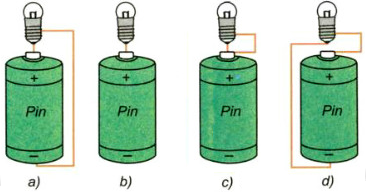 Hình a và d: bóng đèn được nối với hai cực ⇒ có dòng điện chạy qua.